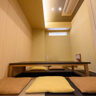木の温もりが心地良い、和モダンな店内。落ち着きがありながらも、肩肘張らないアットホームな雰囲気です。檜の一枚板のカウンターでは水槽を背景に、目の前で繰り広げられるライブ感を味わえます。6名掛けの掘りごたつ個室は2部屋ご用意。2名~最大12名様までご利用可能で、お子様連れの方も気兼ねなくお過ごしいただけます。快速が止まる和泉府中駅から徒歩3分とアクセスも良好ですので、あらゆる場面でご活用ください。