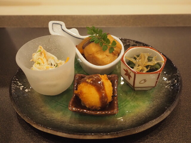 料理の核ともいえる出汁は、お店で1から手作り。創業70年を超える伝統の出汁を活かした「茶碗蒸し」は、手間隙を惜しまず仕上げたこだわりの逸品です。また、「寄せ鍋」「かも鍋」をはじめ、冬季限定「てっちり」など、1人前からカウンターで愉しめるお鍋も多数ご用意。夏季限定「はも鍋」は事前予約が必要ですので、気軽にご連絡ください。