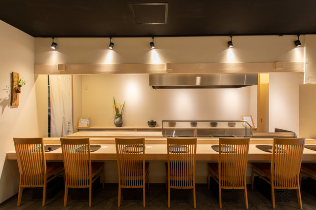 店主がカウンターで揚げる天ぷらと懐石料理。五感を刺激する料理をお愉しみ下さい◎