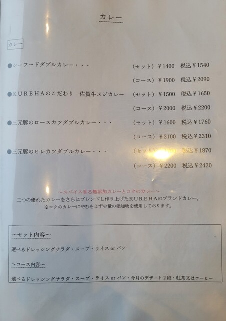 四季を通じて自然を楽しめる川上狭にあり「上質な料理」「紅茶」を味わうことのできるレストランKUREHA。花鳥山水の彩る風景を眺めながら、素材を生かした無添加料理が自慢。ミシュラン三ツ星レストランの元料理長の元で修業を積んだオーナー自らが手掛ける「無添加料理」は“体にやさしいだけでなく、素材の良さを生かした”美味しさを多くの方に伝えたいという思いが込められています。国内最高峰の伊万里牛や、契約農家直