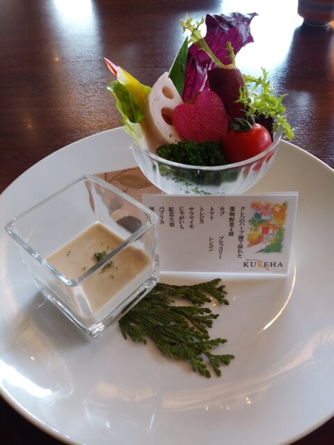四季を通じて自然を楽しめる川上狭にあり「上質な料理」「紅茶」を味わうことのできるレストランKUREHA。花鳥山水の彩る風景を眺めながら、素材を生かした無添加料理が自慢。ミシュラン三ツ星レストランの元料理長の元で修業を積んだオーナー自らが手掛ける「無添加料理」は“体にやさしいだけでなく、素材の良さを生かした”美味しさを多くの方に伝えたいという思いが込められています。国内最高峰の伊万里牛や、契約農家直