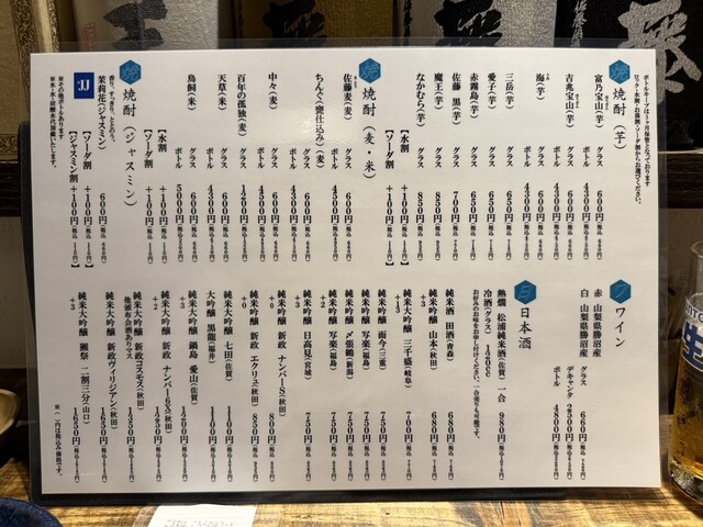 日本酒あり、焼酎あり、ワインあり、カクテルあり、日本酒にこだわる、焼酎にこだわる