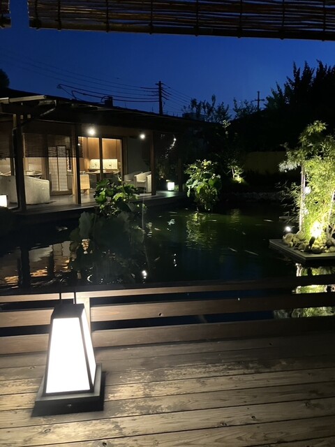 趣ある水盤を中央に据え、池を眺めながら開放的な空間でお食事をお愉しみいただけます。
