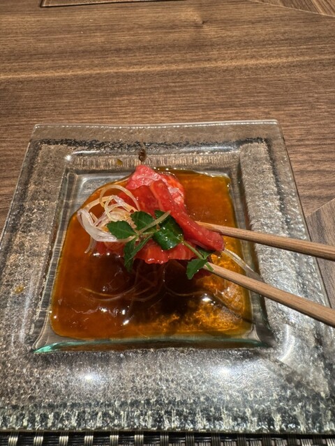 全国の銘柄牛の中から目利きした厳選牛は肉質・脂が良質で深い味わいの黒毛和牛”雌牛”を使用。噛み締める程に味わい深く、飽きのこない雌牛に旬の食材や和の香りを加え、お愉しみ頂けます。