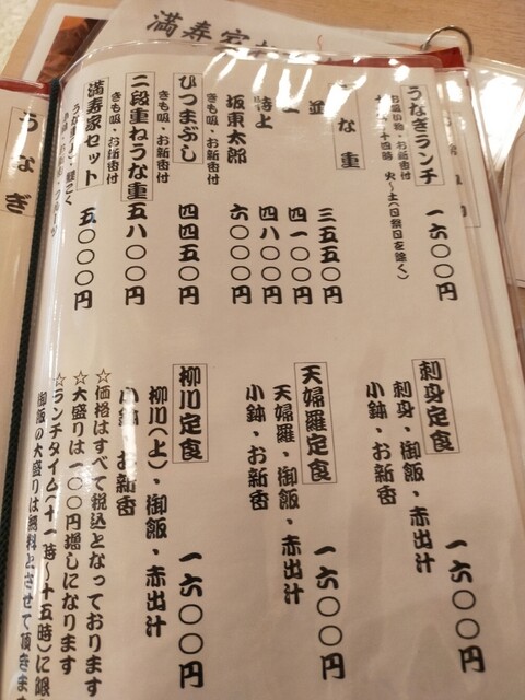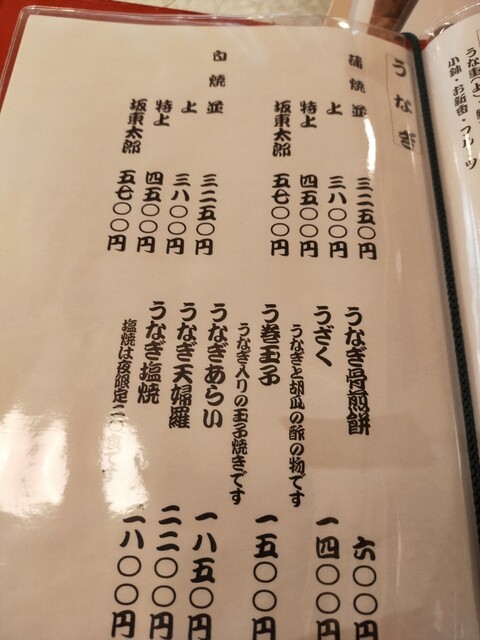 • うなぎ、海鮮、天ぷら
