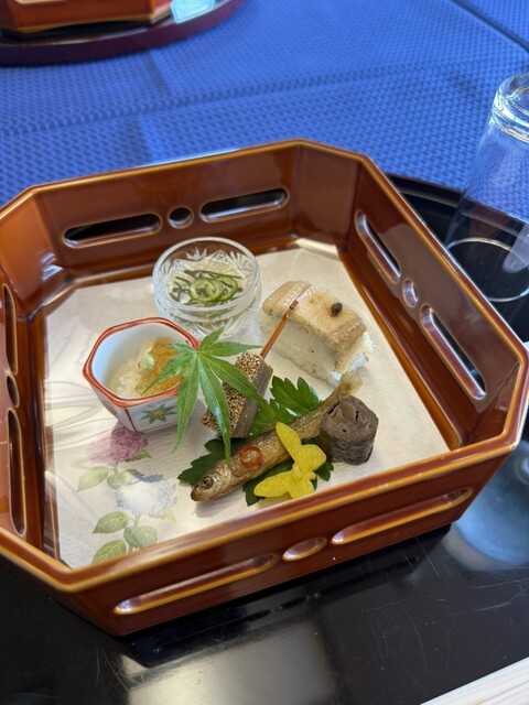 季節の食材を散りばめたコースをご提供。鴨や鯛、松茸、鱧、ふぐなどその時季だからこそ美味しく召し上がっていただける食材もご用意しております。近江各地の蔵元の地酒に合わせて、繊細な職人技が光る品々をたっぷりとご堪能ください。