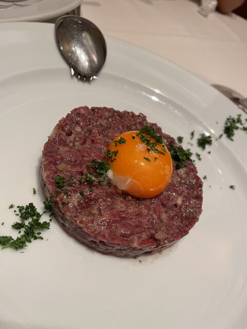 銀座6丁目の路地裏に佇む、パリのビストロを彷彿させる店内。60種類を超える定番のビストロ料理の数々。そしてワイン好きも納得の美酒。本場パリのエスプリを伝えようと、シェフが生み出すビストロ料理は、すべてア・ラ・ミニッツで調理しています。香りさわやかな『人参のラペ』、肉汁あふれる『自家製ソーセージ』、焼き上がりまでに60分を要する『仔羊のロースト』や、フレンチフライたっぷりの『ステーキフリット』、あつ