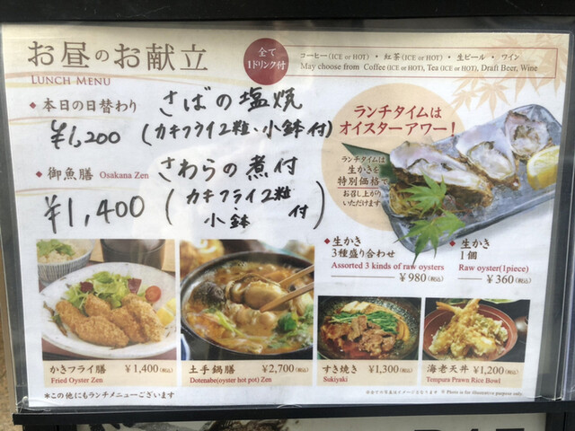 テイクアウト、複数言語メニューあり(英語)