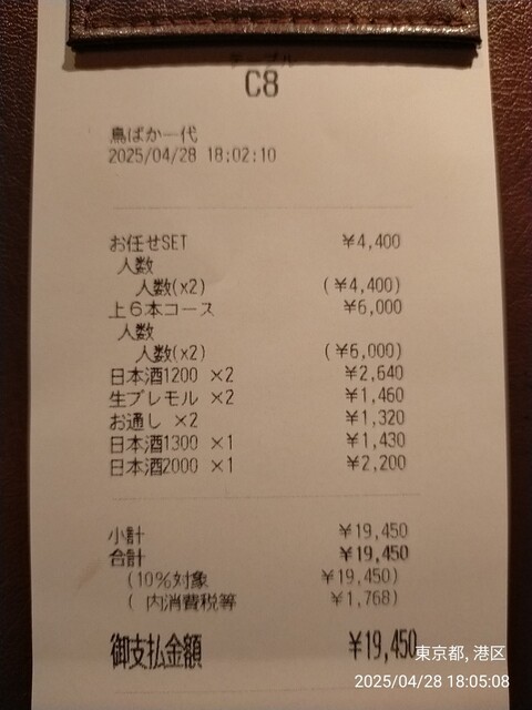 カード可(VISA、Master、JCB、AMEX、Diners)