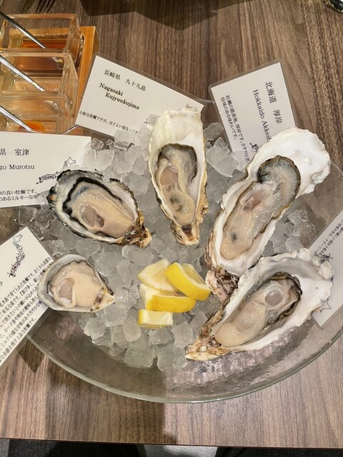 毎週月曜日以外の17時~18時の間は2種類の生牡蠣が1P418円(税込)!!毎日厳選された生牡蠣約8種類の中から2種類を日替わりでセレクト!!個数制限などはございません。1個あたりのお値段としては最安値プランです。