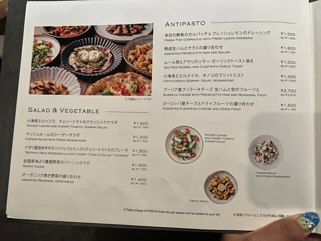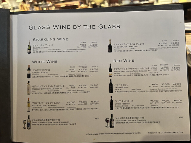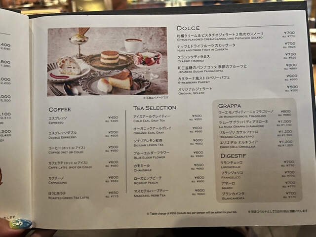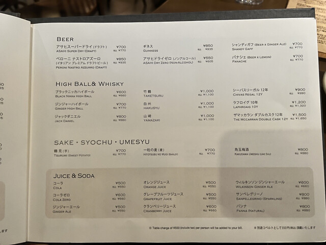 ディナータイムのみチャージ料550円/サービス料なし