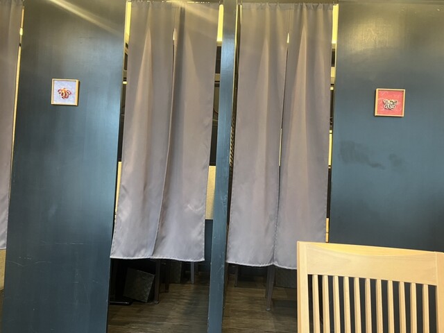完全個室5~6名2席。 完全個室3~4名2席。 半個室2~4名3席。 半個室3~4名4席。 ※繋げて12名まで連結可 9名~のご予約をご希望のお客様は店舗までお問合せ下さい。 5名~アラカルトでのご予約をご希望のお客様は店舗までお問合せください。