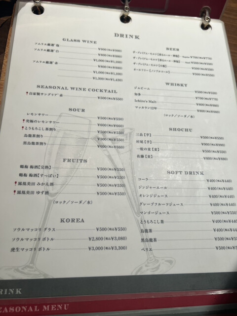 焼酎あり、ワインあり、カクテルあり、ワインにこだわる
