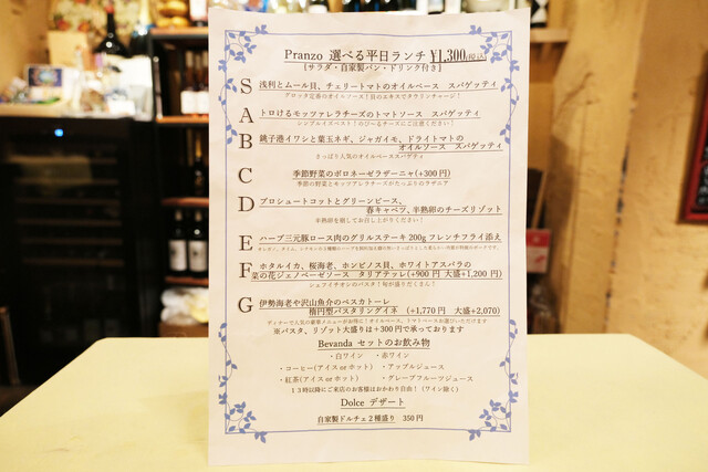 季節によって変わる食材を使ったおすすめメニューをご用意しております。本場さながらのイタリアの雰囲気を是非お楽しみ下さい。