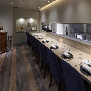 店内は白とグレーを基調とした、スタイリッシュな雰囲気の大人の空間。調理風景が眺められる臨場感のあるカウンター席や、ゆったりとお食事が愉しめるテーブル席、また個室のお席は周りを気にせずにお過ごしいただけます。穏やかな時間の流れる落ち着いた空間は、多彩なシーンでご利用いただけ、店貸切も承っております。特別な記念日や、デートなど大切な方とのひと時にはぜひ当店をご利用ください。