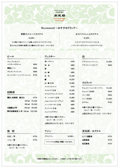 カード可(VISA、Master、JCB、AMEX、Diners)