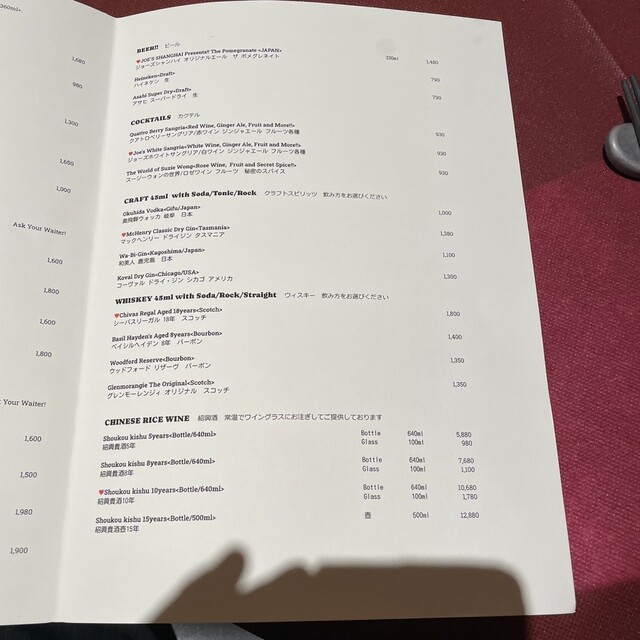 ◾️ディナーご利用のすべてのお客様に「お一人様最低1フード1ドリンク以上のご注文」を頂いております。