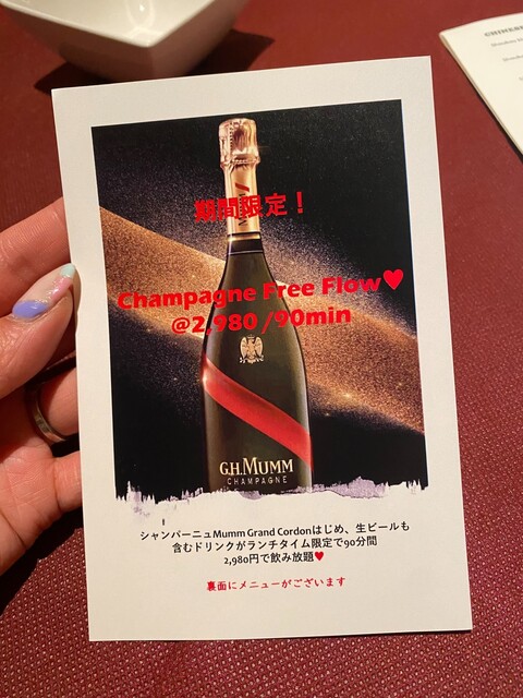 個室は最低保証料金を設けております。 Lunch 4~8名様:¥25,000- 6~12名様:¥35,000- 2~6名様半個室:¥15,000- Dinner 4~8名様個室:¥80,000- 6~12名様個室:¥110,000- 2~6名様半個室:¥55,000-