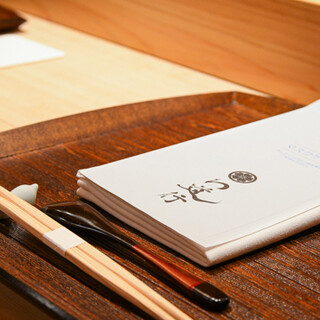 鮮やかな職人の技を目の当たりにできるカウンターは、粋な大人に人気の特等席。7席あるL字カウンターは、熟練したシェフの技を間近で眺められる、ライブ感がたまりません。大通り沿いではなく、路地にある隠れ家的な佇まいは、人目を気にせず、様々なシーンでお使いいただけます。役員会食など、大切なお仕事の場面にもいかがでしょうか。少人数での貸切りも対応可能ですので、お気軽にお問い合わせください。