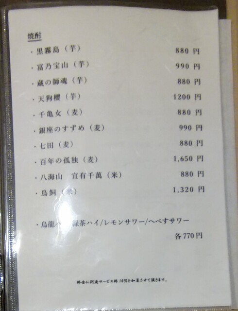 サービス料10%を頂戴しております。