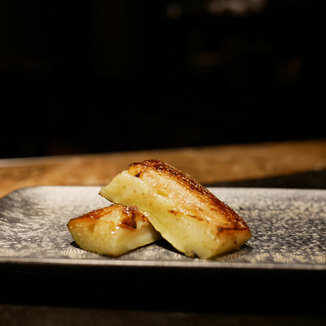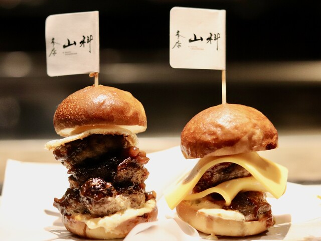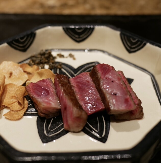 【カウンターメインの鉄板焼き本店山科】。料理長が全国各地から厳選した、近江牛をはじめとする和牛を使用したコースをご用意しております。40〜50ヶ月間長期肥育した岡崎牧場の"完熟近江牛"は、芳醇な香りと深みのある旨味が格別。その日の肉の状態や部位やカットに合わせベストな焼き加減でご提供いたします。ぜひ、細部までこだわり抜いた至極の逸品をご堪能ください。