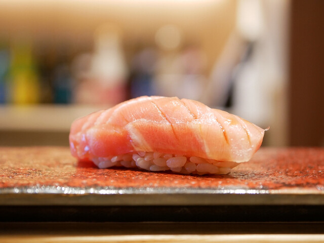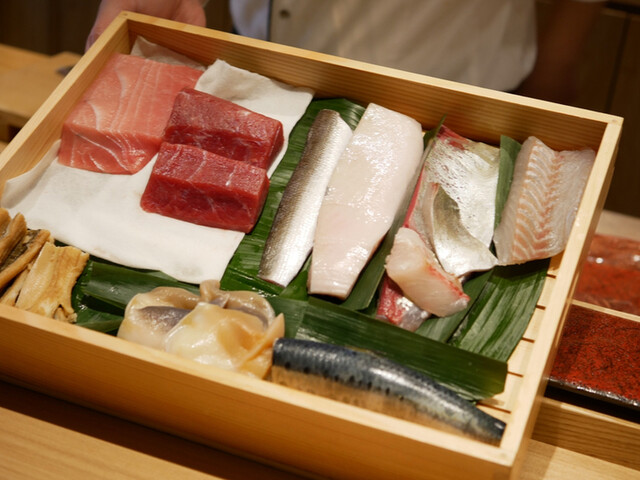 つまみと握りが交互に展開されるスタイル。集大成として供される鮨はネタごとに適宜な仕事を施し、素晴らしい一貫としてお客様に満足いただけるよう握ります。ぜひご堪能ください。