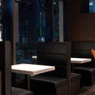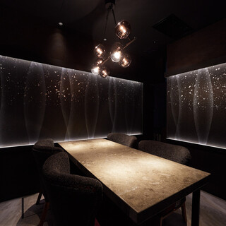店内は都会的で洗練された非日常空間。大理石を使用したカウンターは臨場感あふれ、圧巻の存在感を放っています。2名様掛けのテーブル席のほか、2~4名様までのゆったりとした個室もご用意。落ち着きのあるプライベートなお部屋で、接待やお祝いの日にも最適です。また、テーブルやお皿など細部まで趣向を凝らし、無垢材の椅子は職人による手作り。こだわり詰まった上質空間で、大切な方と特別なひと時をどうぞ。