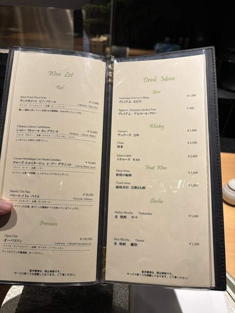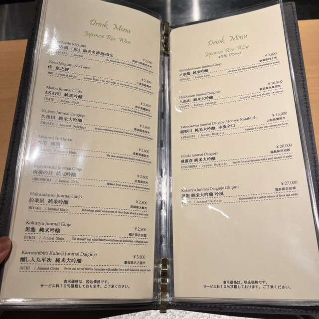 飲食代金の10%をサービス料として頂戴いたします