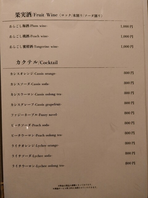 L.O. 料理22:00 ドリンク22:30