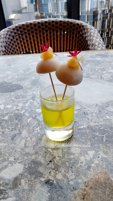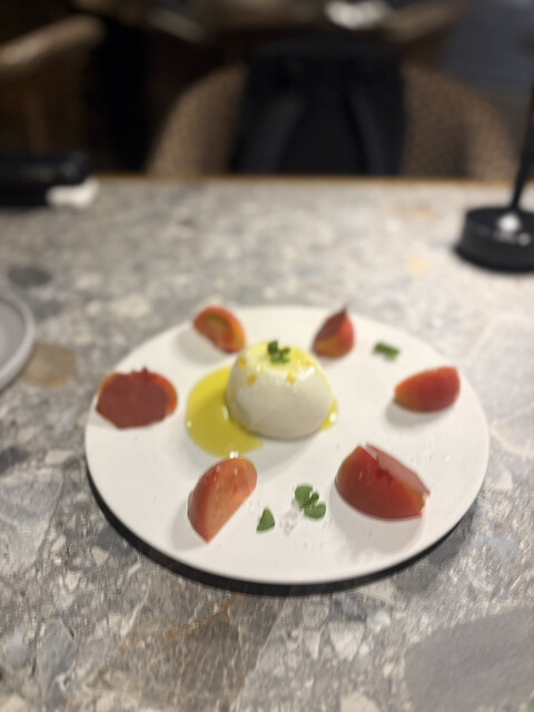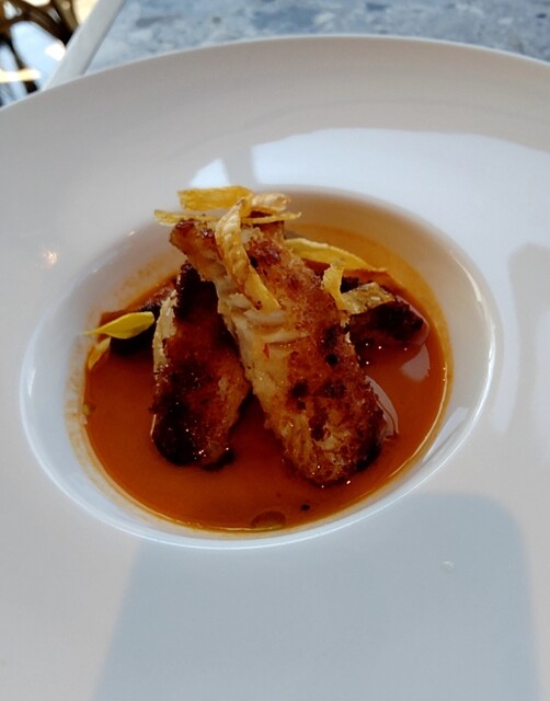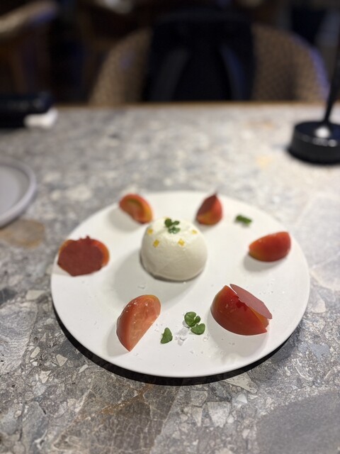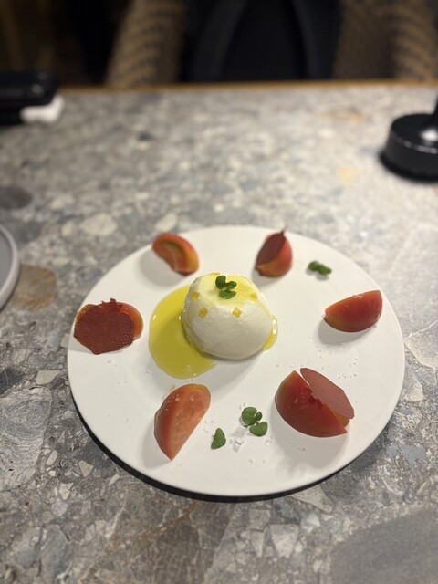 太陽を浴びるトマト畑を表した「トマトブッラータ」は世界の一流シェフ愛用のオリーブオイル「セドリック・カサノヴァ」を3種からチョイス。トマトチュイール(クッキーの一種)まで手作りです。スペインで出会った「ウエボス・カブレアオス」はポテトフライ、目玉焼き、辛味ソースを目の前で和えてご提供。ブリオッシュのパンケーキ「ローズが香るパンペルデュ」は外パリッ中ふわっ。ローズバター&ウォーターでバラが香ります。