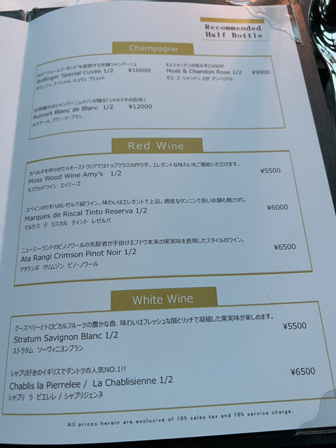 サービス料10%/テーブルチャージ料1,210円/カウンターチャージ605円