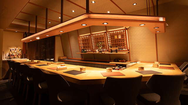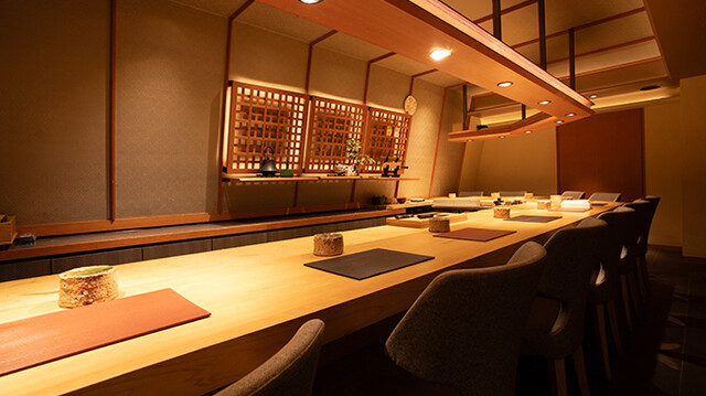 カウンター席のみご用意。落ち着きと寛ぎを纏った和モダン空間…