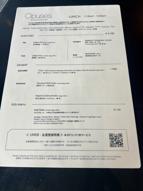 L.O. 料理20:00 ドリンク20:30