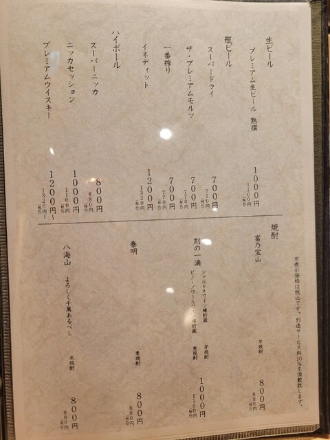 サービス料10%を頂戴しております。 (ランチ利用時はコースご注文のお客様のみサービス料10%を頂戴しております)
