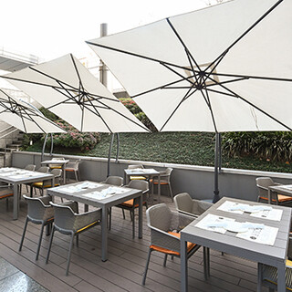 当店は地下一階に位置しながらも、自然光が差し込む明るく開放的な雰囲気。店内には洗練された非日常空間が広がります。お席はゆったり過ごせるソファや最大8名の半個室、最大10名様までの完全個室、心地良いテラスなど幅広くご用意。