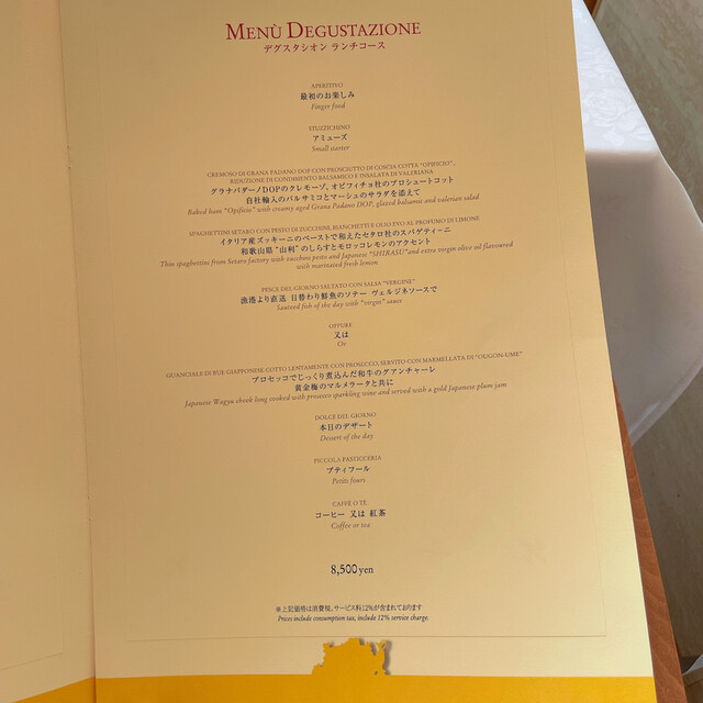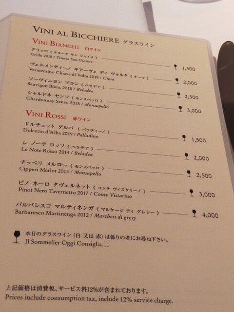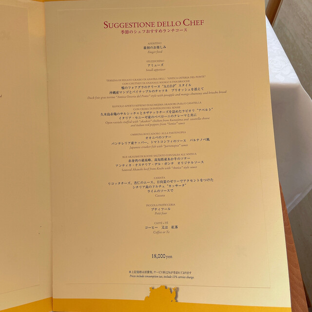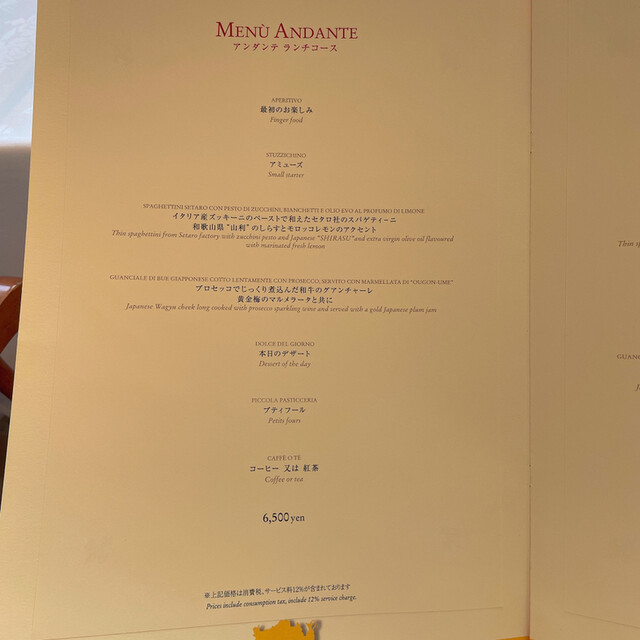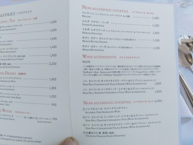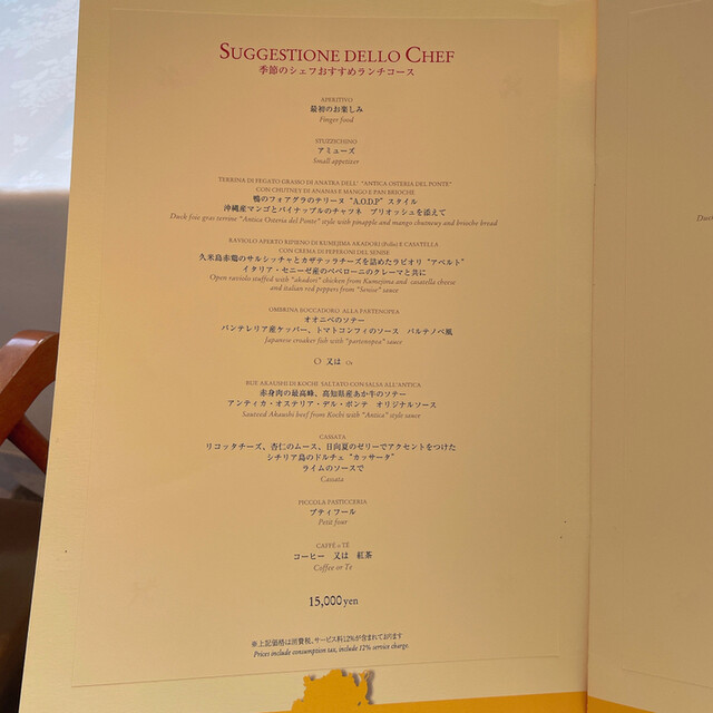 ランチ・ディナー共に12% 表示価格は全て税・サービス料込です