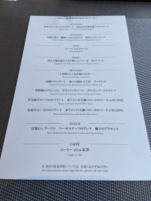 カード可(VISA、Master、JCB、AMEX、Diners)