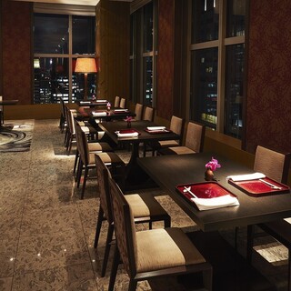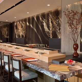 こだわりの店内は、日本の「四季」と「森」をテーマにしたモダンな雰囲気が魅力。調理風景を目の前で眺められるカウンター席や、テーブル席、4~10名様でご利用可能なプライベートな個室を完備。29Fからの開放感たっぷりの美しい眺望と夜景が、特別な時間を彩ります。