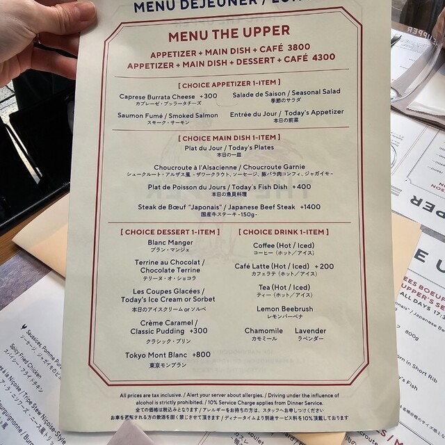 ディナータイムは別途サービス料を10%頂戴しております