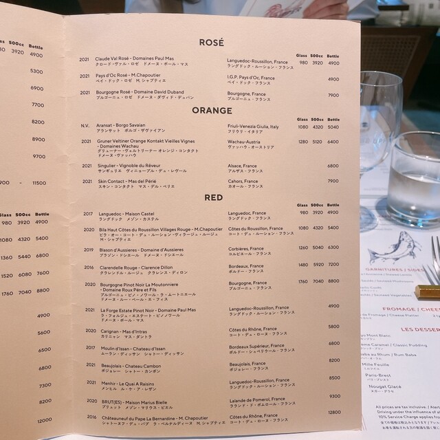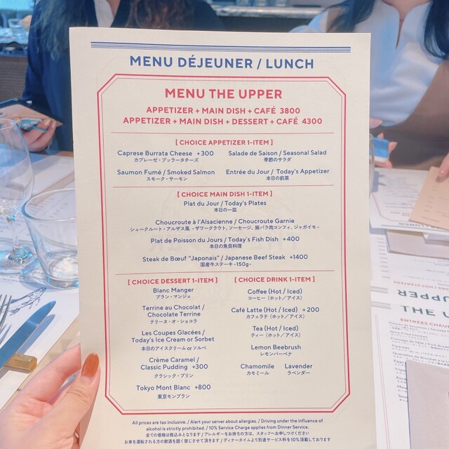 ディナータイムは別途サービス料を10%頂戴しております