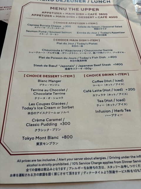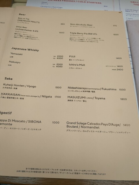 ディナータイムは別途サービス料を10%頂戴しております