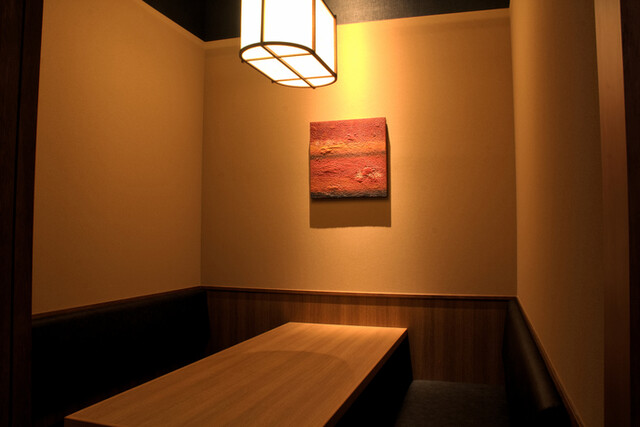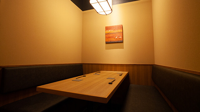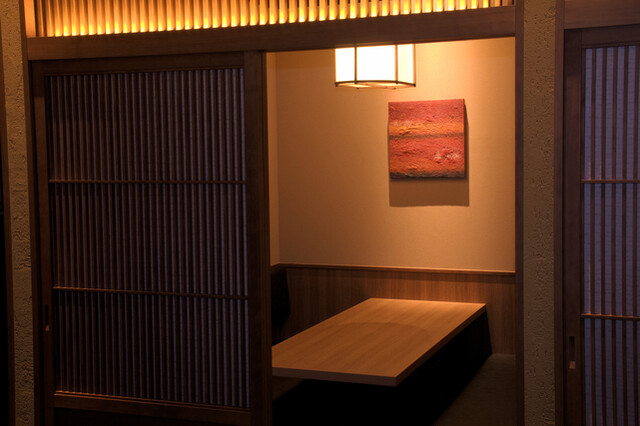 割烹スペースには個室2部屋がございます。 (4名~6名様) ※個室は消防法の関係で天井部が解放されています。大きなお声でお話されますとお声が外に聞こえる場合がございます。 ※個室料5,000円を頂戴しております。
