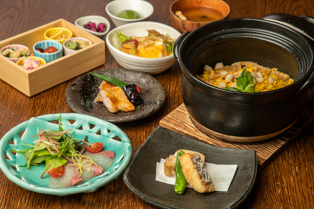 野菜料理にこだわる、魚料理にこだわる、健康・美容メニューあり