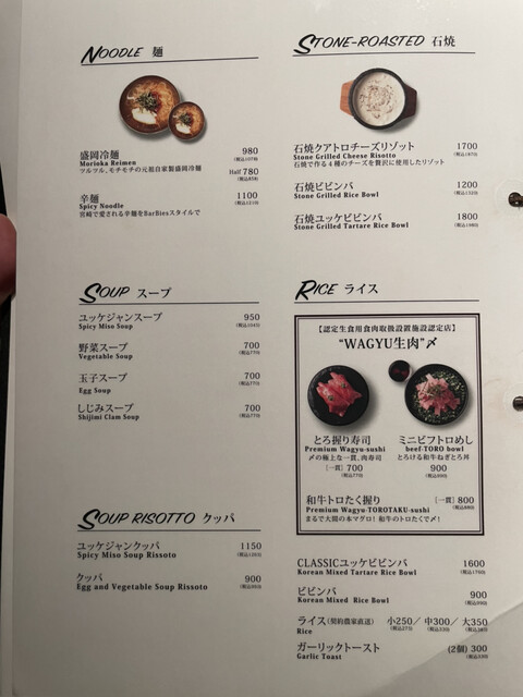 ▶We use raw meat in our restaurant. Children, the elderly, pregnant women, people who are not feeling well, or people with weak immune systems should avoid