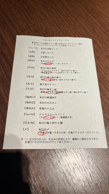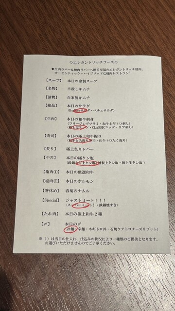▶We use raw meat in our restaurant. Children, the elderly, pregnant women, people who are not feeling well, or people with weak immune systems should avoid