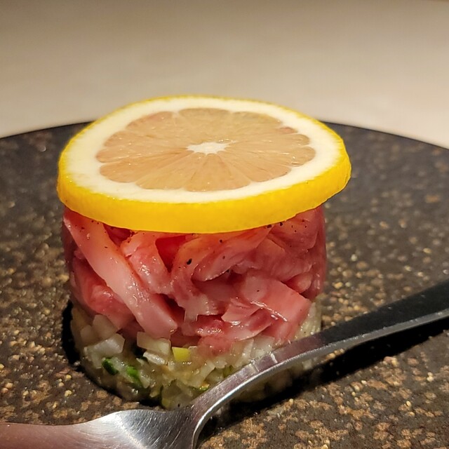 ▶We use raw meat in our restaurant. Children, the elderly, pregnant women, people who are not feeling well, or people with weak immune systems should avoid