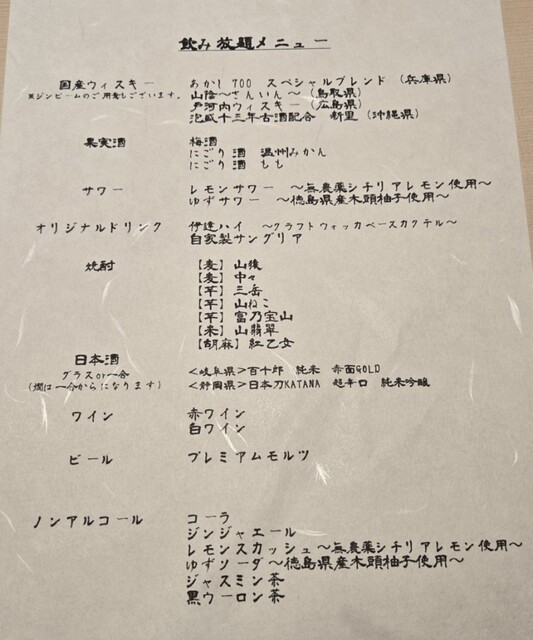 L.O. 料理21:00 ドリンク21:30