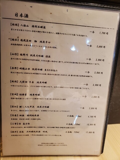 サービス料10%を頂戴しております