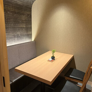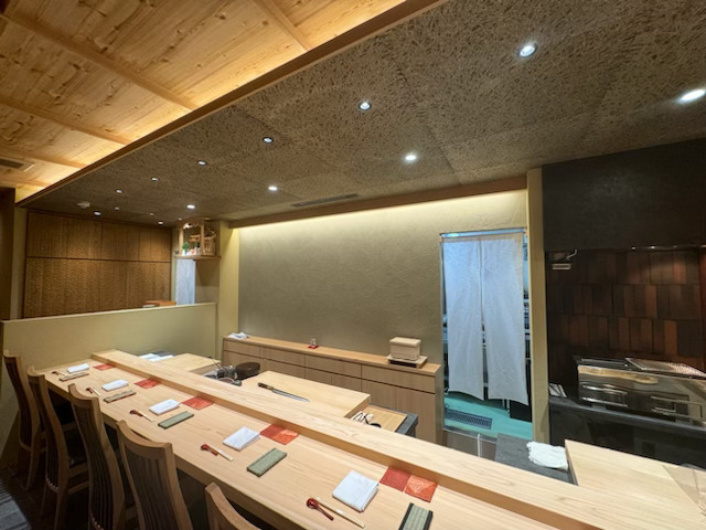 当店は木目調を基本とした洗練された空間。一枚板のカウンターでは目の前で職人の技が楽しめます。また、周囲を気にせず特別な時間を過ごせる、プライベート空間の個室もご用意。さまざまなシーンでのご利用をお待ちしております。