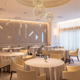 古典様式の建物に囲まれた閑静な通りに佇む当店。白を基調とし、グレーやプラチナシルバーで細部のディテールまでこだわった店内は、シックで洗練された雰囲気が漂います。シャンデリアが一層エレガントな雰囲気を醸し出し、大人の為のゆったりとした心地良さを演出。ご家族やご友人とのお食事はもちろん、完全個室での会食や接待など幅広くご利用いただける点も魅力のひとつ。穏やかで優雅なひと時をお約束いたします。